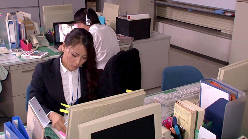 社内でも美人で有名な同僚が、誰も居ないオフィスで深夜残業。これはチャンスだと、いつも見向きもされない僕は彼女にセクハラを仕掛けたい気持ちはあるけど勇気がない。だからヘッドホンをつけてエロDVDを鑑賞。でも音はわざとダダ漏れ!!すると後ろでこっそり聞いていた女子社員が熱くなった股間をモジモジ…。